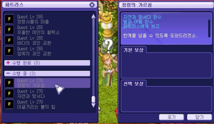 정령의 가르침 이라는 퀘스트를 받은 후