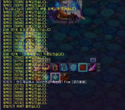 고눈 재분과 체력연마, 각성아머의 효과로 캐릭터의 순수체력이 제 경우에는 20만이므로 응급치료로 틱당 치료되는 회복치는