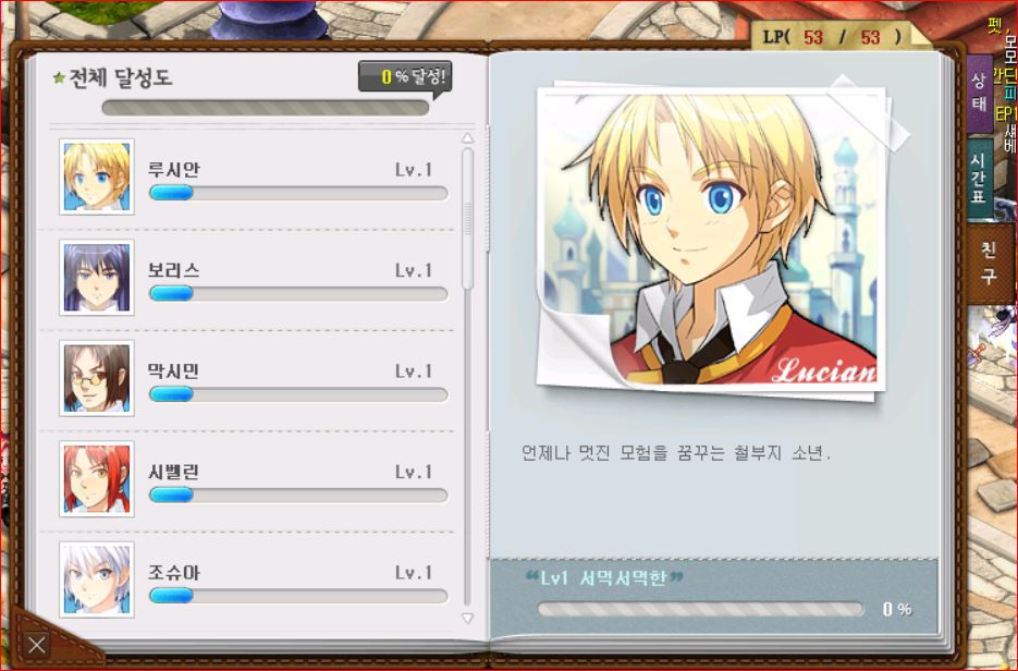 - 각 캐릭터의 친밀도 레벨을 알 수 있음.