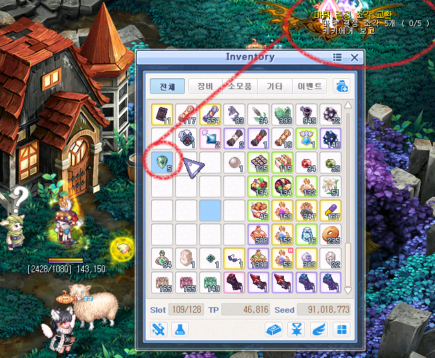 참고: 이 잡템 5개를 가지고 있어도, 퀘스트 보상을 받을 수 없습니당
