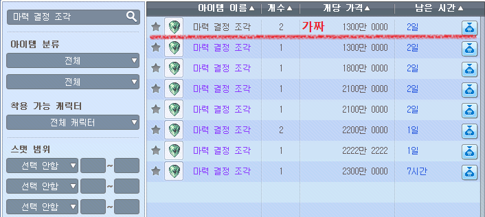 며칠전부터 거래소에 잡템 '마력 결정 조각'이 올라와있는게 보여서 글 남깁니다.