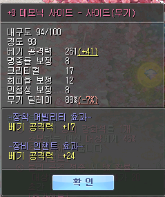 무기 - 단일 공격력, 뎀증, 뎀추or단일공격력 (위와동일)