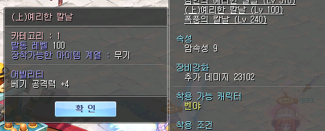 ex) 모든 단일무기 종류의 최대값 220 공격력 = 안버리고 쓰거나 거래소에 판다.