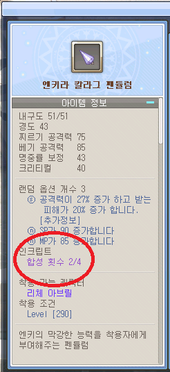 해당 장비는 인크립트1회, 합성횟수 1/4 이여야 합니다.
