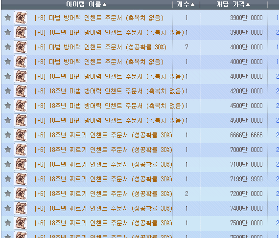 그럼 +8,+8은 뭘까요? 88작입니다. (30프로가 아닌 축복치없음 이 달린 주문서의 인챈트 1회 성공확률은 약 2프로)