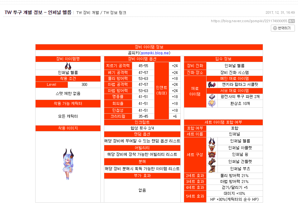바로 이렇게 '인퍼널 장비 테일즈위버' 식으로 '키워드 테일즈위버'를 검색하시면 거의 모든 정보가 나옵니다.