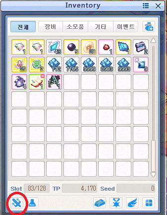 ** 해당 창들은 모두 아래와 같이 인벤토리 강화 창을 열고 해당 탭을 눌러서 적용 할 수 있습니다.