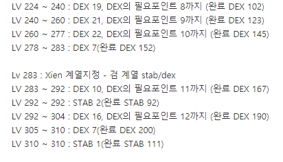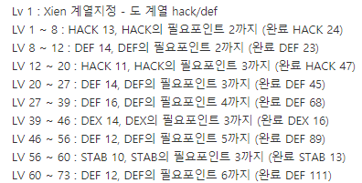 - 그래서 중요한 것은 필요포인트나 완료스텟까지 레벨과 무관하게 찍는 것이 아니라, 레벨에 맞게