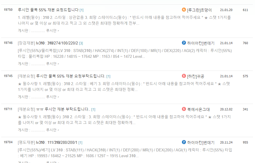 재분법은 각 케릭터 게시판에서 "310"을 검색합니다. (보통 310만렙 재분이라 그이하 재분법은 대충 비슷하게따라하셔야합니다)