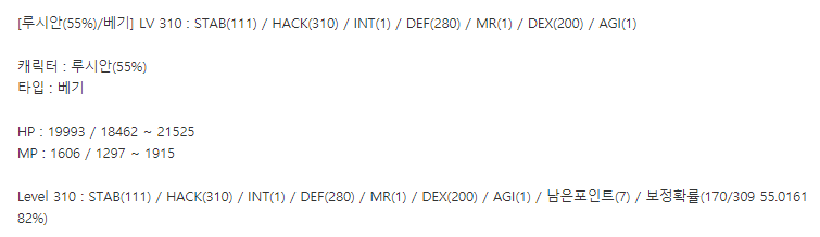 보정확률과 본인의 운에 따라 스텟이 해당 재분법보다 더 추가로 붙을 수도 있고 아닐 수도 있게 된다는 것입니다.