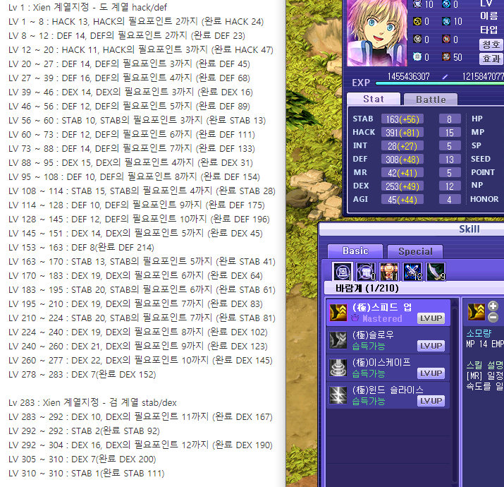 바로 스텟 필요포인트가 단계적으로 상승하는 것을 알 수 있을 것이며,