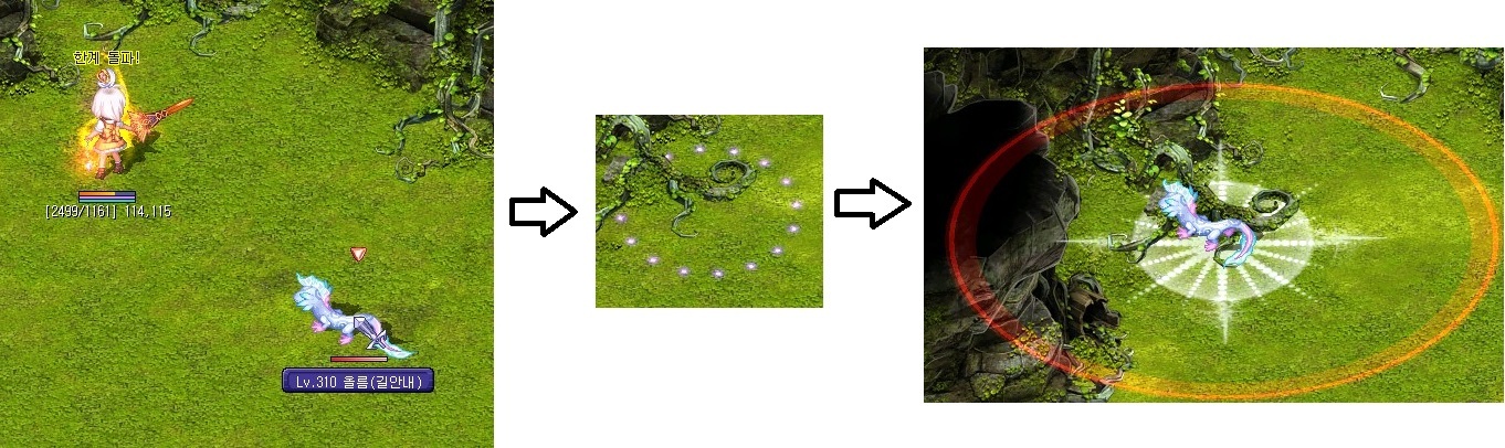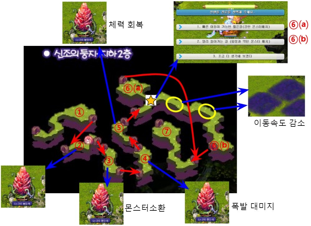 2층은 진입시 보이는 아래 몬스터( 올룸(길안내) )를 맵의 특정 위치에 이동.