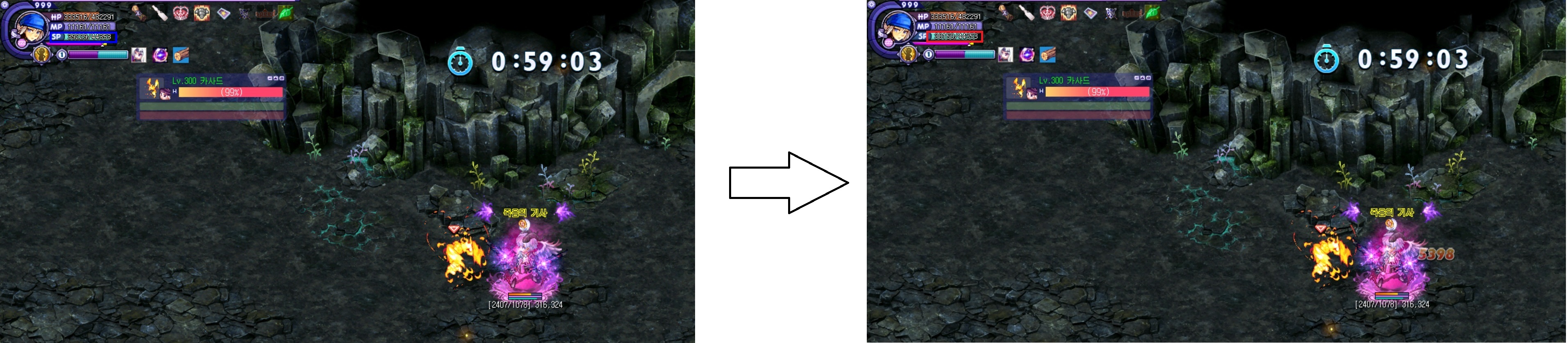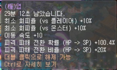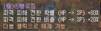 발동확률 90%일시 100대맞으면 10대는 HP가닳고 90대는 SP가닳음
