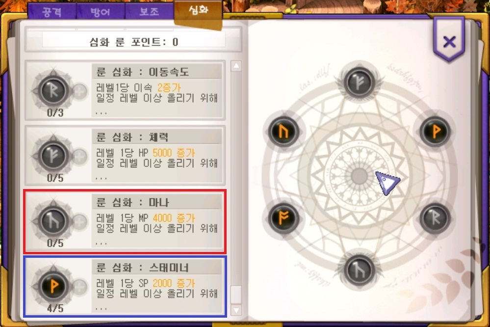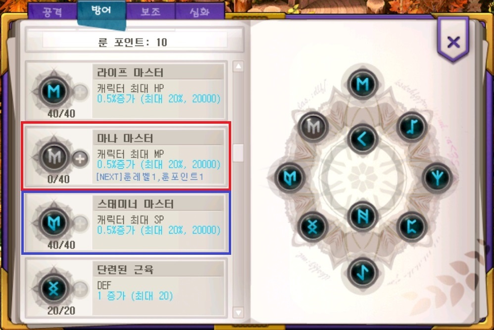 SP or MP소모에 따라 1분당 회복 옵션 부여석 돌려서 선택!