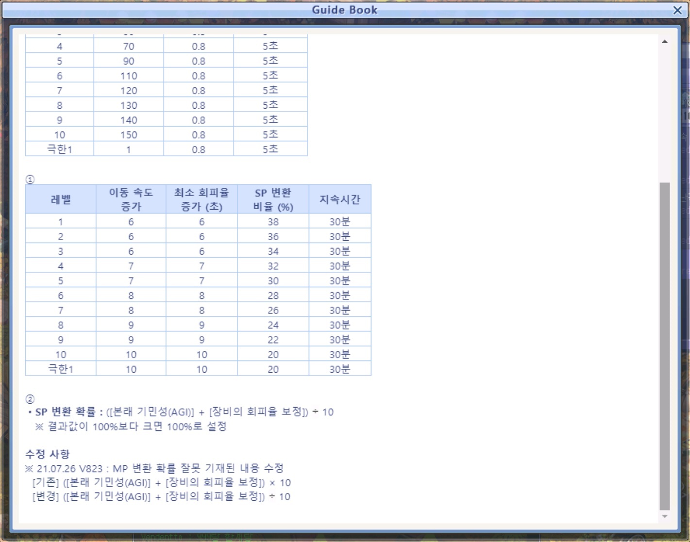 '인술 엽'의 세부 공식 입니다. 회피율수치와 순수AGI의 수치에 전환 확률이 적용 됩니다. 노어질 아퀼셋 기준으로 회피율최상(매직리폼 최상옵 기준) 650정도 됩니다. 그렇다면 인술엽의 발동 확률은 = 65%