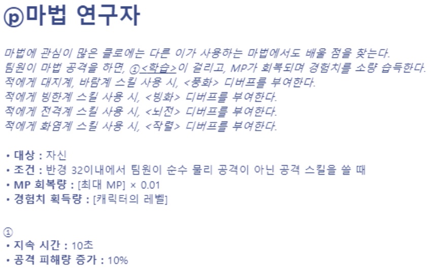 컨버젼 - 피격시 소모되는 마나를 일정 회복