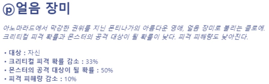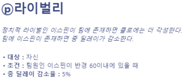 발동 확률 : 조건 없이 100%, 타 캐릭은 능력치 맞춰야할게 많음.