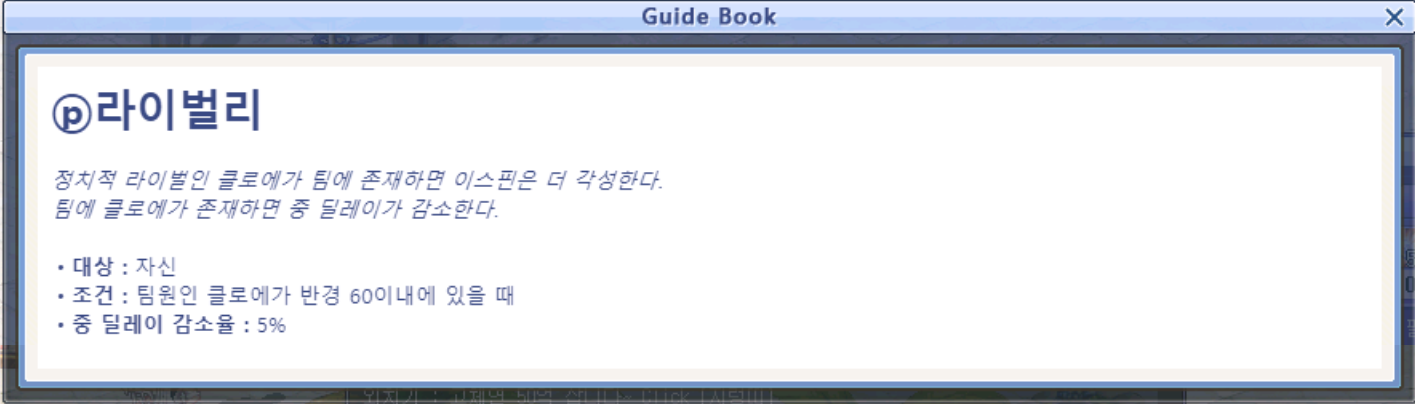 단점 - 사용 후 약0.5초후 회복됨, (내)턴을 소비함. 무빙중 사용x