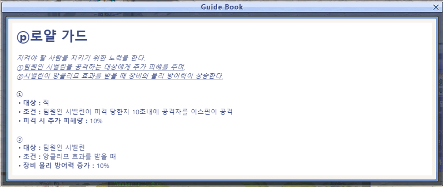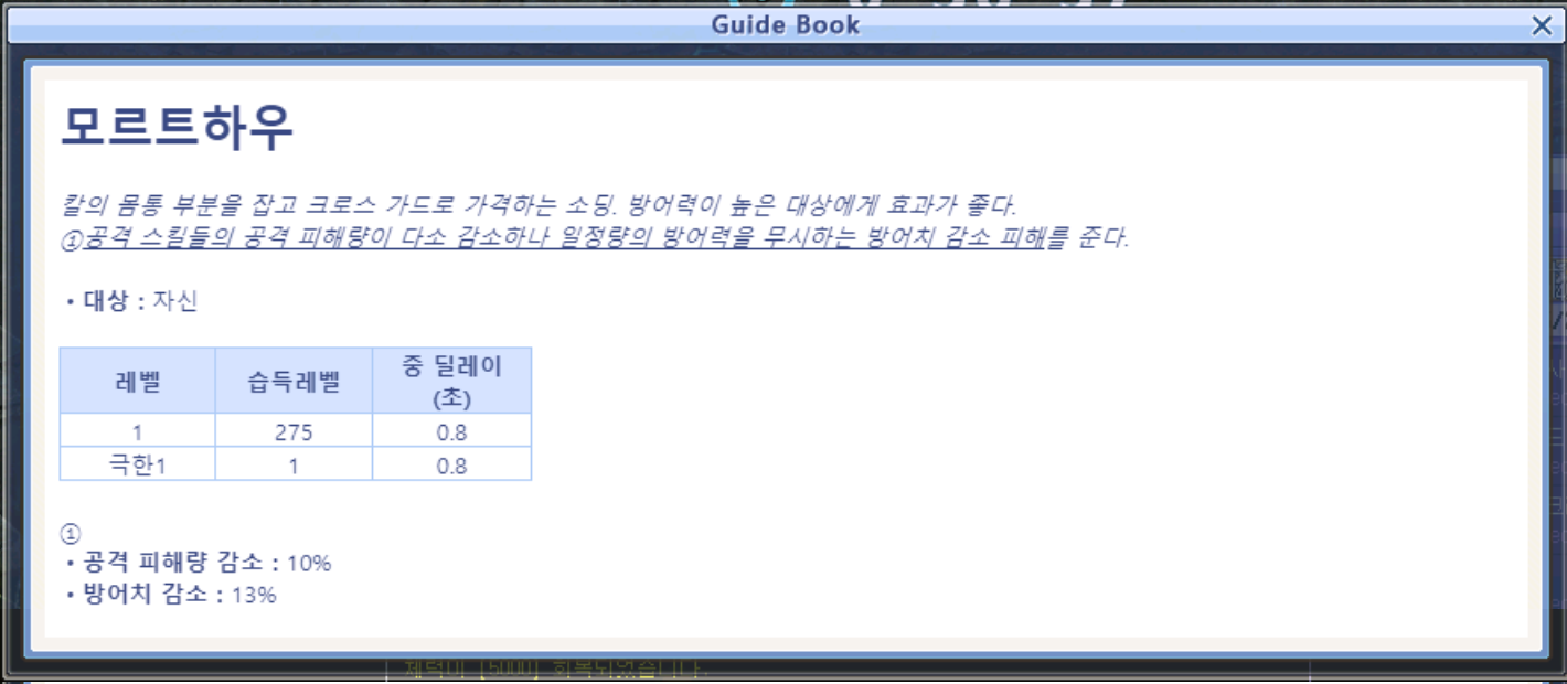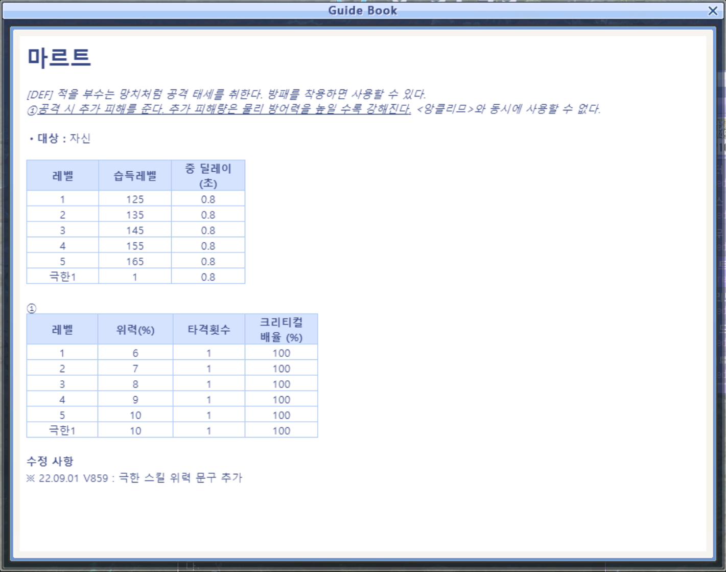 * 마르트 - 방패들었을 때 사용가능, 토글형 스킬