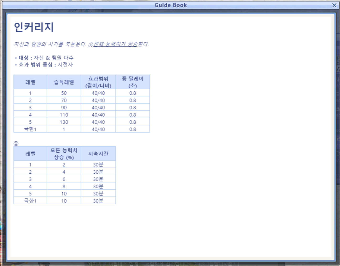 * 인커리지 - 자신&팀버프 모든능력치(순수) +10%