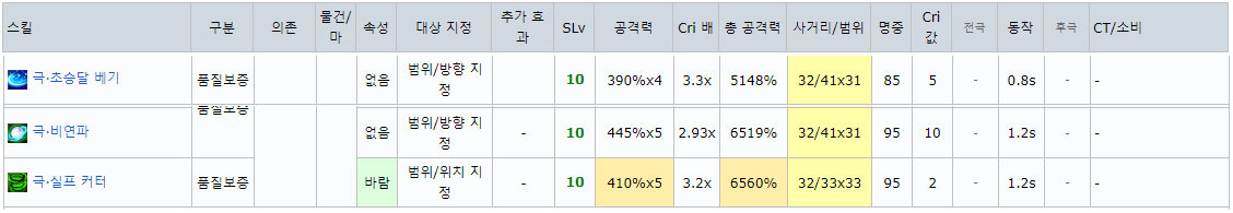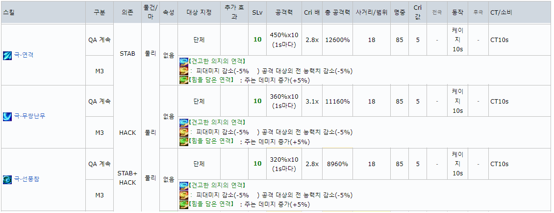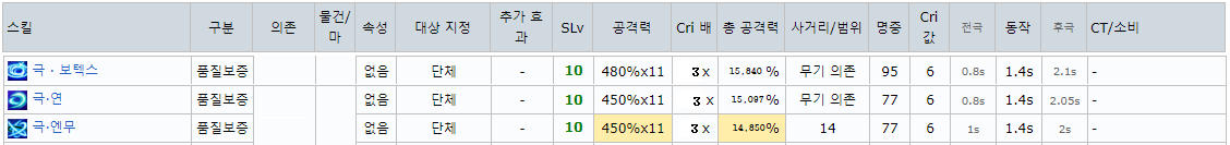 단, 물리복합 / 베기형의 경우 5타스킬이긴하나, 중딜 1.2s는 연마강화가