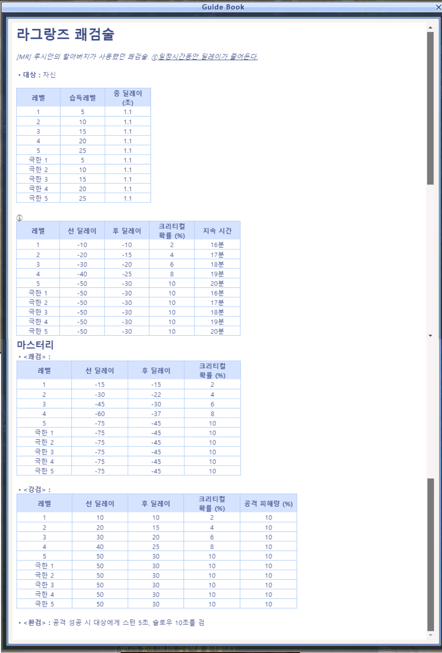라그랑즈쾌검술의 존재로, 연마강화 + 커프중딜 3% 보정 시