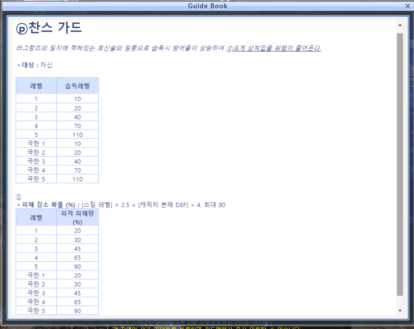 발동 확률 - 순수 디펜(재분배상수치) 270일 때 최대 80% 발동 확률.