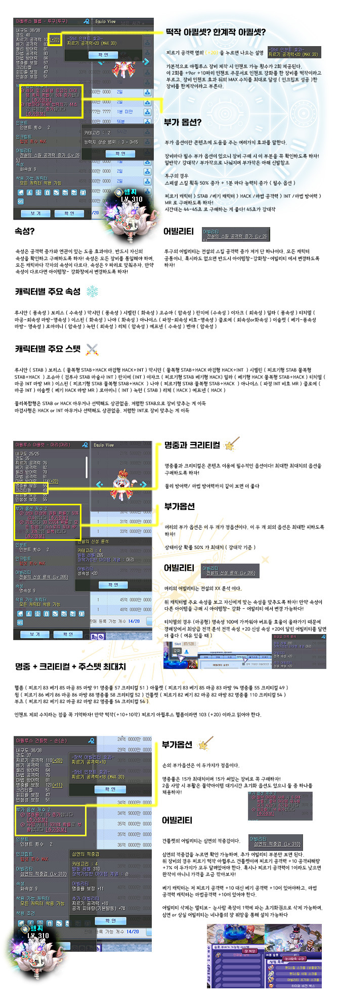 이 글은 버닝or 만렙 이후 장비를 어떻게 맞춰야 하는지 궁금한 분들을 위해 작성한 글입니다.