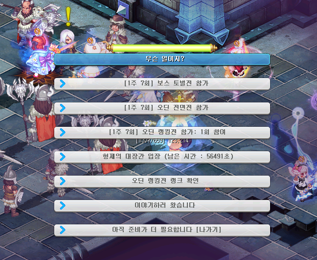 보상 : 경험치 1억과 금화주머니 80개 (4000만시드) 매일 획득 가능