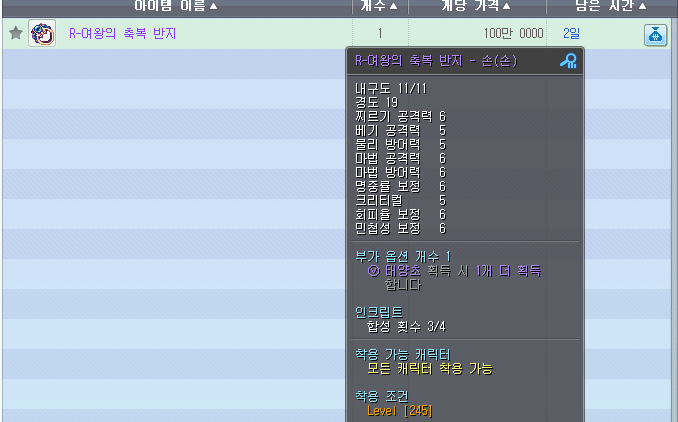 효과 아이템 255 - 400 사이의 효과를 구매해서 착용해주세요 효과 아이템의 장점은 시세 유지가 잘 된다는 점입니다. 아페 어려움과 토벌전을 가기 위해서는 필수적으로 구매해주시는 것이 좋습니다