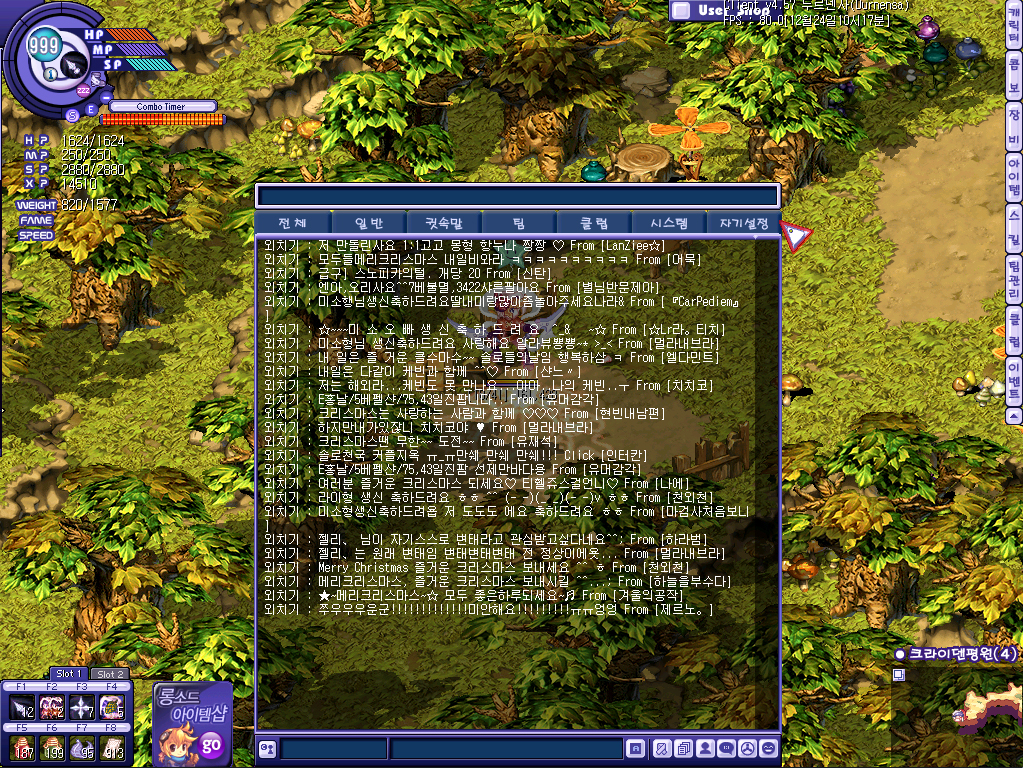 귓속말을 잘 사용하지 않기에 외치기를 쉽게 볼 수 있습니다.