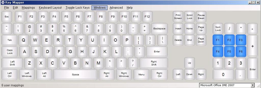 ex) F1 키를 드래그에서 넘버키7 부분에 옮기면 덮어씌워집니다
