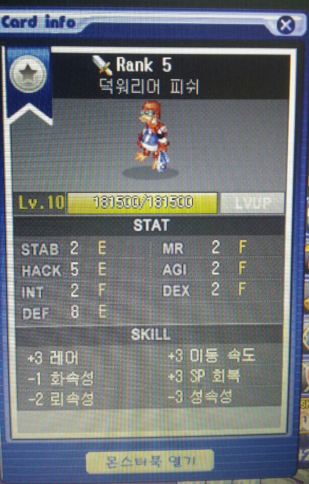 4. 찾아본 레시피 : 저걸 살리고 싶습니다. 3레어 3이속 3sp회복 빼고 속성들 제거하고 3성속 3성속공격 3mp착취로 이솔렛 카드 만들고싶은데 도와주세요 ㅠ