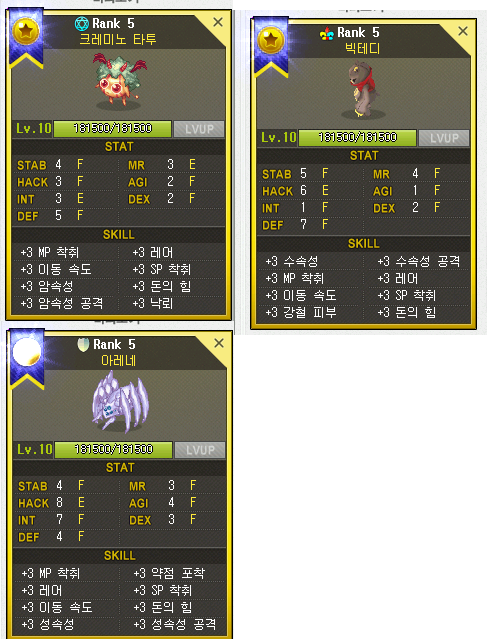 보호필름은 좀 있습니다만.. 캐릭을 여러개 키우다보니 속성별로 필요하네요..