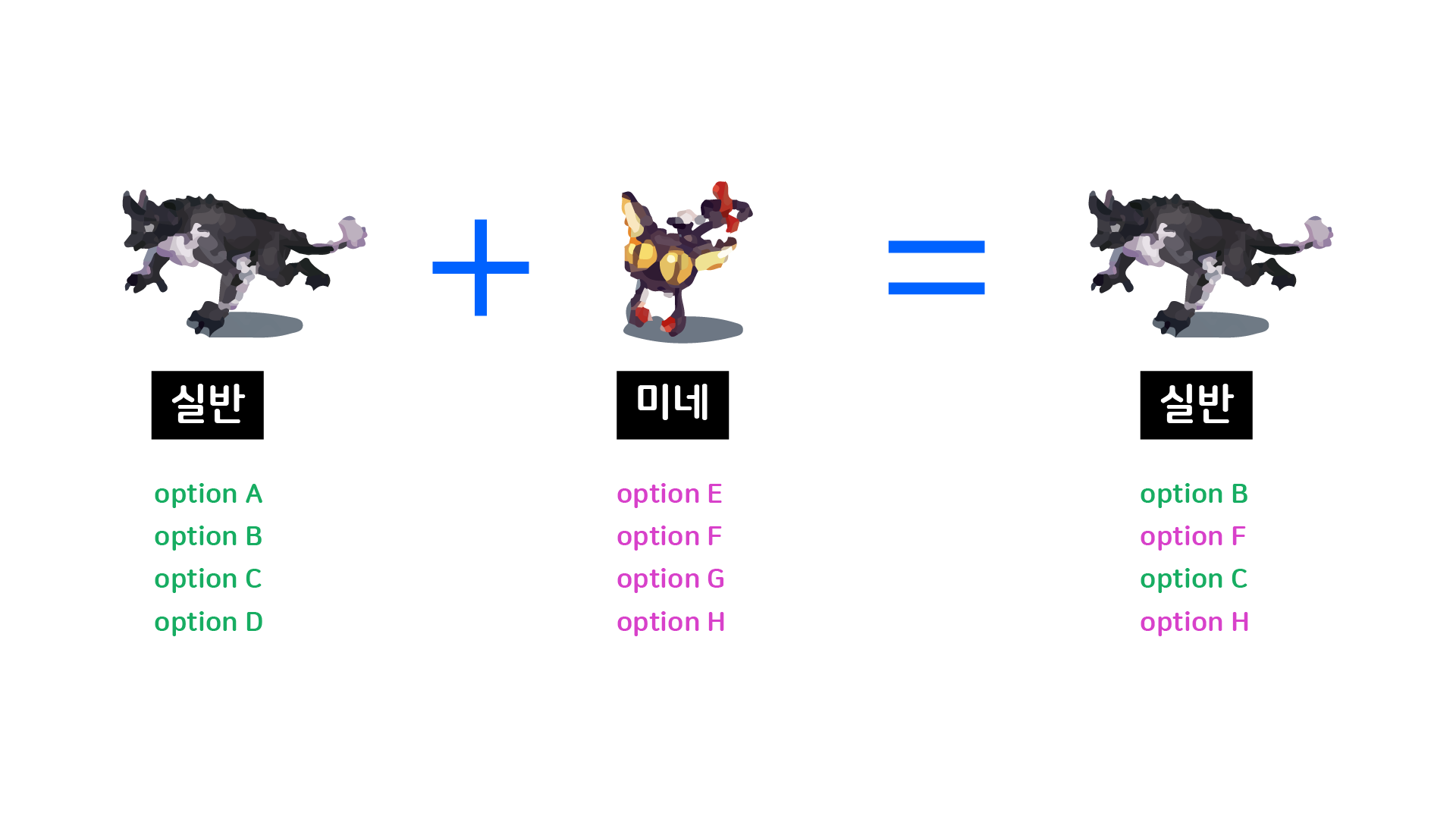일단 고정으로 넣었으면 하는 옵션은 식탐/ 레어 / 이속 / 주속성