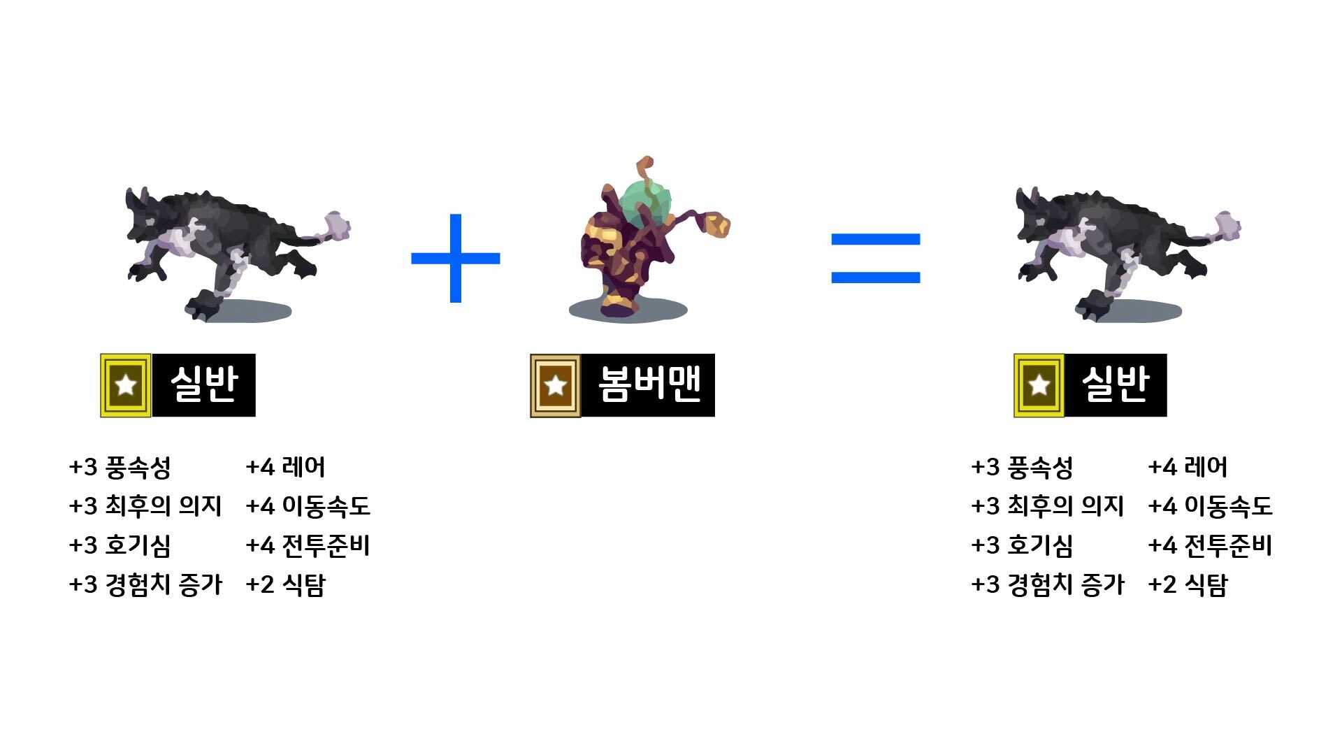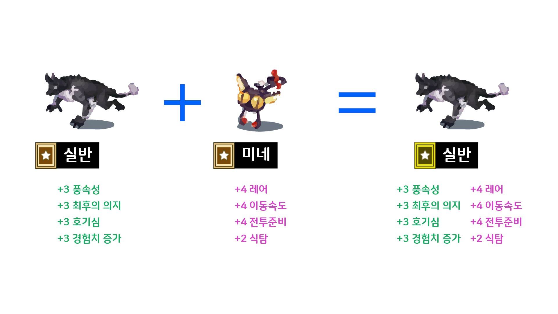 실반 카드에 미네 카드를 합치면 둘의 능력치가 랜덤하게 섞인 실반이 나오게 됩니다.
