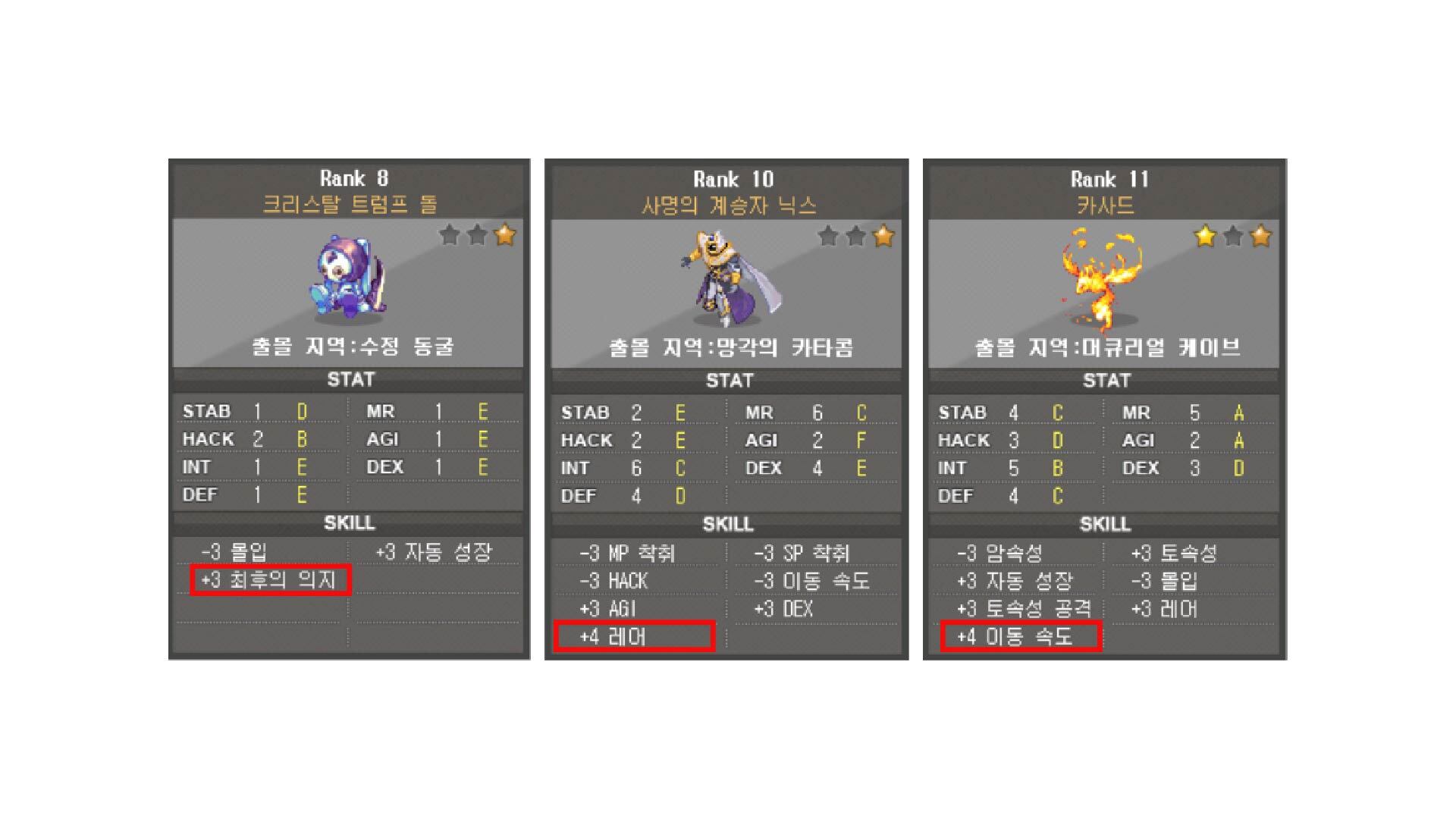 주의할 점은 여기서 스킬 8개는 확정으로 정할 수 있게 되지만 몬스터의 스탯은 랜덤하기 때문에