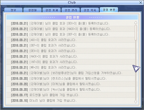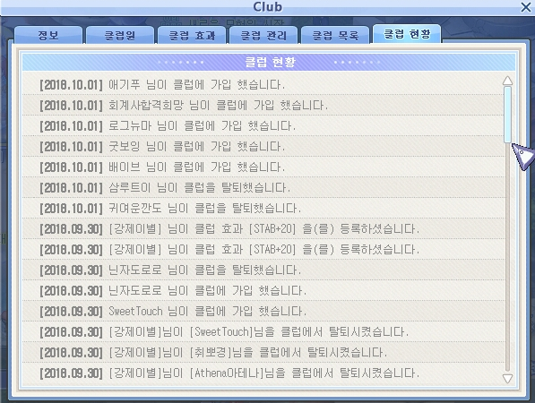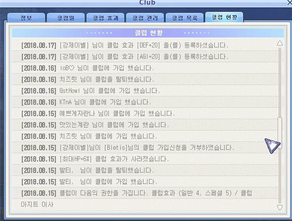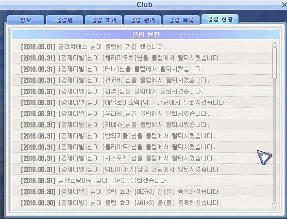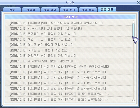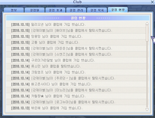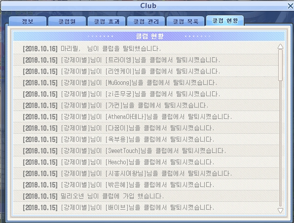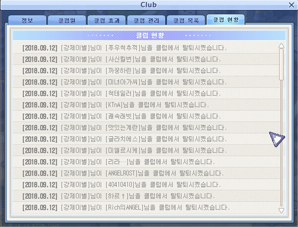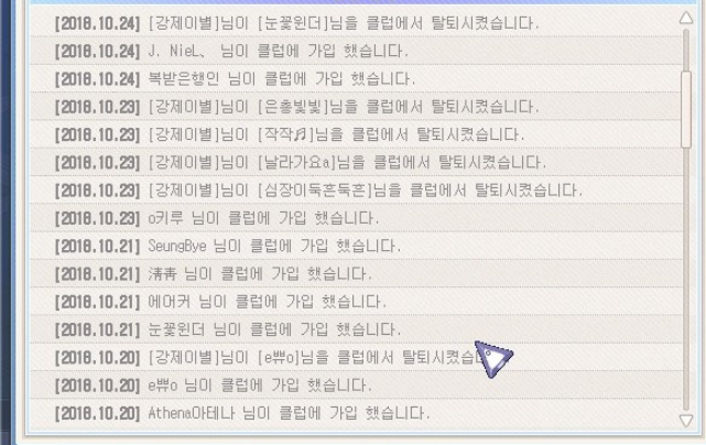 이별클럽 클럽활동로그 모음(스압주의) 작성자[오를]『막군』|작성시간18.11.11|조회수1,857 목록 댓글 4 글자크기 작게가 글자크기 크게가 님이 강퇴한 목록인데 님 거짓말로 농락당한 사람들과 전에 있던 부클럽장님께서 보시면 엄청 화나실것 같지 않아요? 님 다 거짓말로 님이 강퇴한사람들 다시 클럽권유하고 그랬잖아요?? 다음검색 현재 게시글 추가 기능 열기 북마크 신고 센터로 신고 댓글 댓글 4 댓글쓰기 답글쓰기 댓글 리스트 작성자Ryuai | 작성시간 18.11.11 닉값..? 답댓글 작성자[오를]『막군』 작성자 본인 여부 작성자 | 작성시간 18.11.11 네 닉값하네요 정말로 ㅋㅋ 작성자박나래 | 작성시간 18.11.11 닉값했다 작성자[제르나]불타는번개/힐에취한이밤 | 작성시간 18.11.16 정독했는데요. 가입 당일 탈퇴, 또는 가입 당일 강퇴의 빈도로 볼 때... 클럽 안에서 무슨 일이 일어나고 있든지 간에 상상 그 이상일거란 생각이 드네요.. 댓글 전체보기