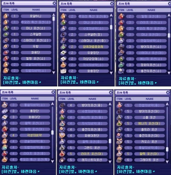 조제 70종 전체 효과량/재료 : http://cafe.daum.net/MagicWeaver/Q60A/13150