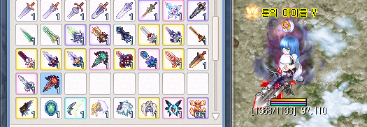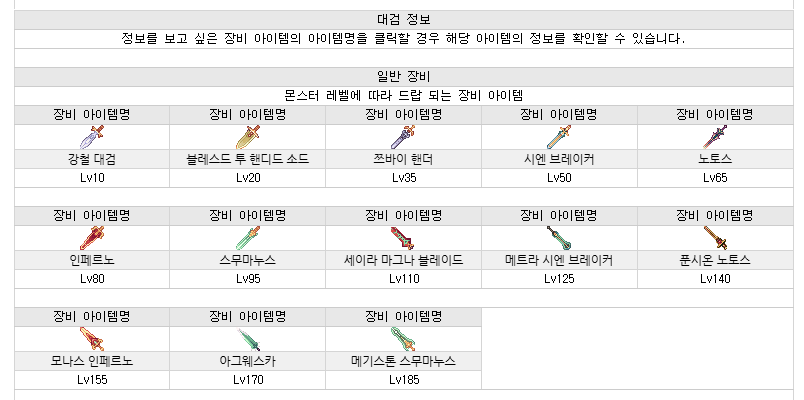 이제 우리는 위의 조건을 따라 외형을 따고 싶은 무기를 구하면 됩니다. 하지만, 옛날처럼 마을에서 무기를 팔지 않고, 특정 레벨까지는 R-xx 아이템이 드랍되므로 현재 테일즈위버 내 외형을 딸만한 무기의 선택 폭이 그렇게 넓지는 않습니다. 그러므로 아이템을 구하기 위해선 열심히 손품과 발품을 팔아야 합니다.