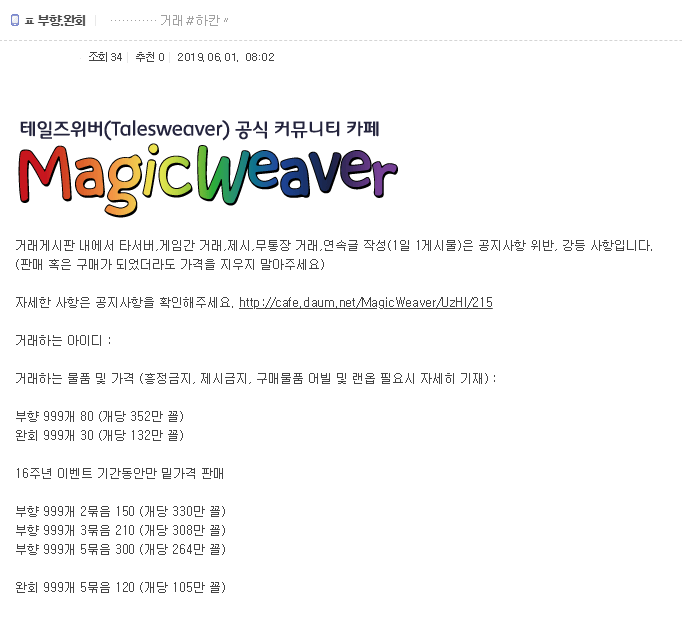 아이디가 어던가 익숙하다 했더니 클라드 워프에서 매일 개인상점 열어놓던 분 같아서 바로 가봤습니다.
