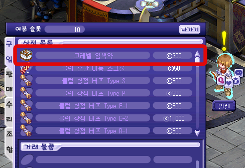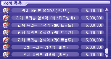 ※ 이외에 원하는 색상으로 염색하고 싶은 경우 '캐릭터 만능 염색약'으로 RGB를 입력하여 염색 할 수 있습니다