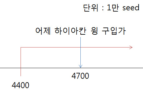 제가 아미티스 플라티나 윙이란 것을 실물의 화폐-_-를 이용해서 처음 살 때만 해도 원가인 4400만에서 4450만 정도면 거래가 가능했던 것 같습니다. 아주 악독한 클럽이 성을 독점하고 윙을 틀어막을 때는 4500까지 가곤 했지만, 그 이상의 가격으로 분명히 거래가 될 수 있음에도 불구하고 윙의 가격은 4450만 근처를 크게 벗어난 적이 없습니다. 이유를 한참동안 고민을 해 본 결과 아마 가장 큰 원인은 당시 씨드가 사람들에 의해 만들어지는 양이 그다지 크지 않았던 것 때문인 듯 합니다. (더 괜찮은 이유가 생각나시는 분은 댓글을 달아주시면 감사하겠습니다.)