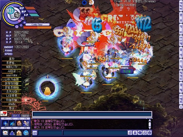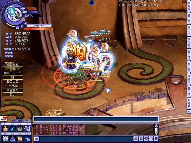 공략 : 플링에서도 원석을 캘때도 보석을 캘때도 우리의 심금을 울리게 한 람죠니를 팰 때가 왔습니다. 공격을 맞으면 체가 2천 정도 빠지더군요. 격수 한분이 몸빵을 하게 하고 다른사람들은 반대쪽에서 공격을 하고 티치 한명이 맞는 격수를 전담해서 힐을 주는 방식을 사용하면 쉽게 깰 수 있습니다. 그래도 람죠니는 강하니 주의하세요;;