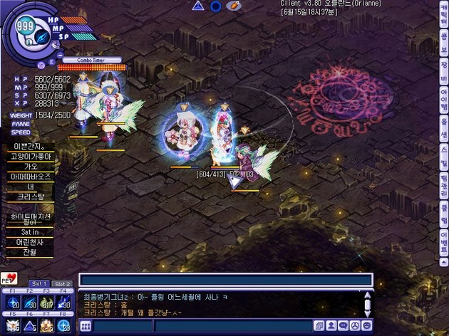 공략 : 보시다시피 나야트레이 이름이 시뻘겋고 이스핀은 메기스톤 프레임세이버를 들고있습니다. 무진장 강하단 얘기죠. 여긴 한마리씩 유인해서 죽어라 공격을 하는 것이 가장 좋은 방법으로 생각됩니다. 그래도 환경마나가 999이기 때문에 그리 어렵지는 않을거에요. 다만 언제나 그랬듯이 파티는 뭉쳐다니세요.