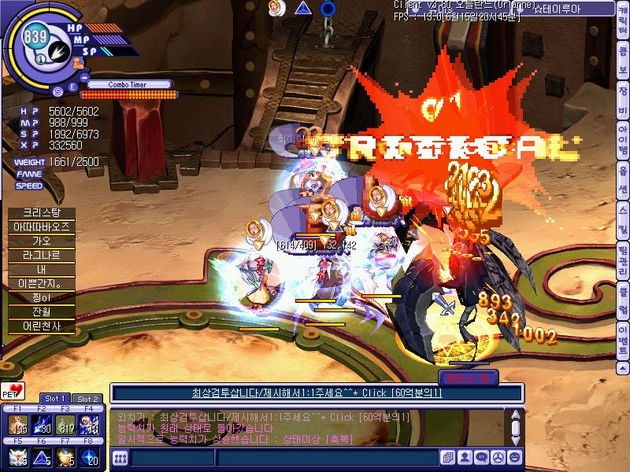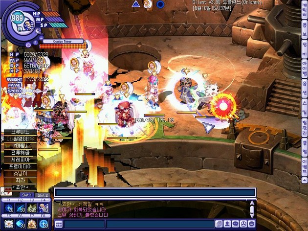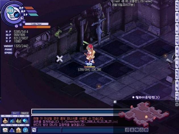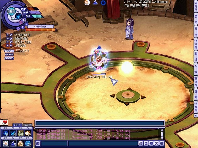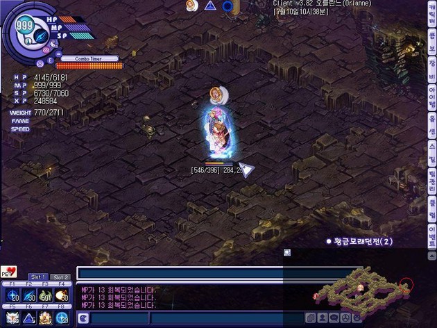 공략법 : 황금모래던전 3층에 대해서는 다들 아시다시피 두갈래 길입니다. 한 쪽은 처음 스샷에서 보시다시피 결계석이 있고 그쪽의 결계석을 깨면 두번째 스샷처럼 반대쪽에서 워프가 열립니다. 그 워프를 통해 다음층으로 진행하지면 됩니다. 또한 워프 이후에는 비석이 존재하며, 비석 근처에 가면 랜덤으로 층이 떨어지거나 그냥 함정만 걸리고 비석이 사라지며 계속 진행이 가능하기도 합니다. 결계석의 방향은 층을 올라갈때마다 계속 바뀌니 그 점 유의하세요. 결계석이 있는 쪽으로 대부분이 가고 이동속도가 느린사람이 워프 쪽으로 가는 것을 추천하며 몹이 제법 강하기 때문에 혼자 돌파할 자신이 없다면 다른분들과 같이 몰려다니세요.