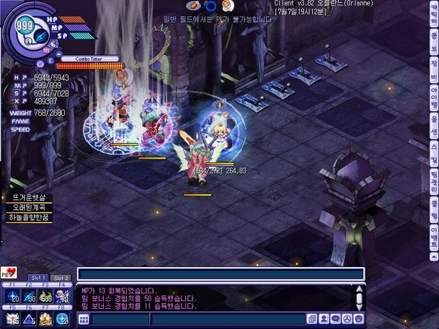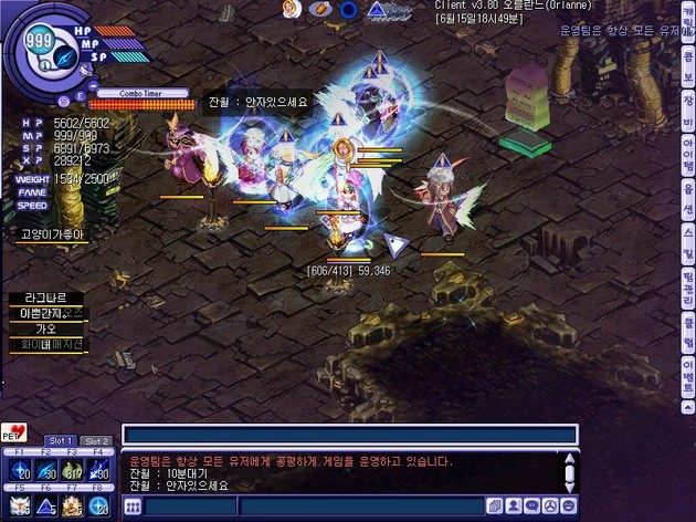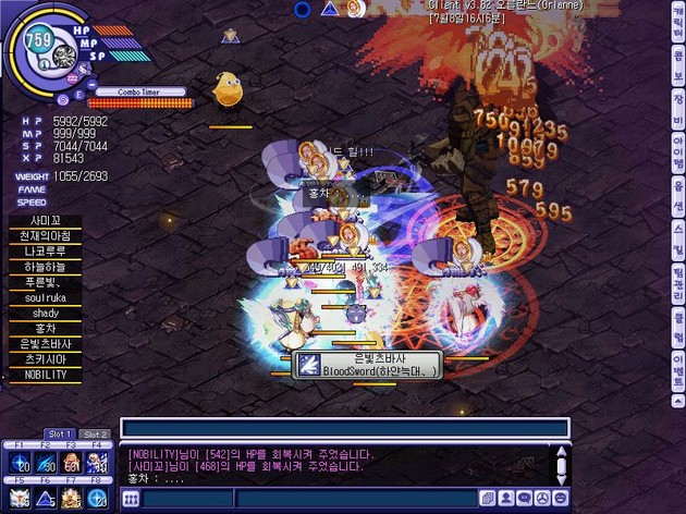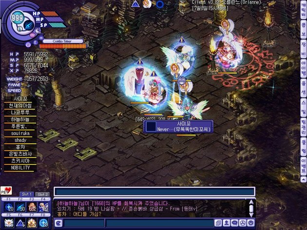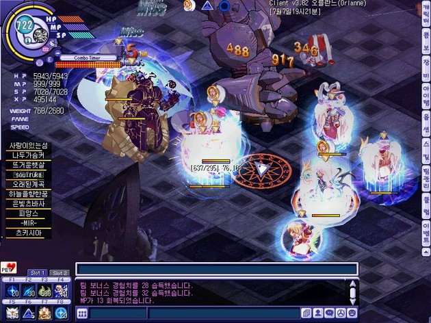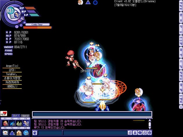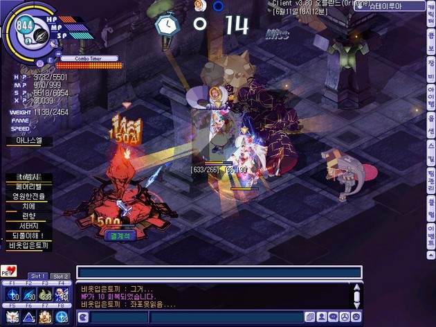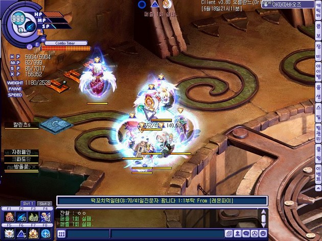 공략법: 이제 지긋지긋한 환마 99의 시작입니다. 격수분들은 특별히 신경쓸거 없이 범위기만 조정하시면 되고, 티치의 경우는 스샷의 퀵슬롯처럼 배려3 레지1 와블대신 블5 힐10 아미13 등으로 조정을 하시면 환경마나 99로 사용이 가능합니다. 여기에선 파티 전체가 몰려다니는 것을 추천합니다. 역시 추가리젠 주의!