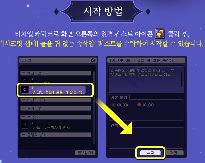 카디프 마을 입구 NPC 미행하기 ( 멀어지거나 가까워지면 실패 ) > 맛 선택 ( 글쓴이는 하얀맛 ) > 쿠엔자마을 (사막1) >