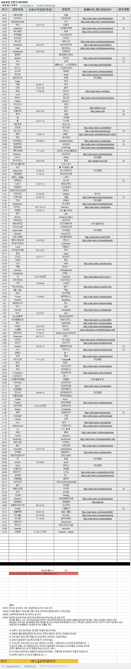 거의 접다시피하는 테일즈인데 연명부는 알아서 업데이트 되고있으니 다행(?)스럽네요 구글문서도구로 만들어놓길 잘했네요.