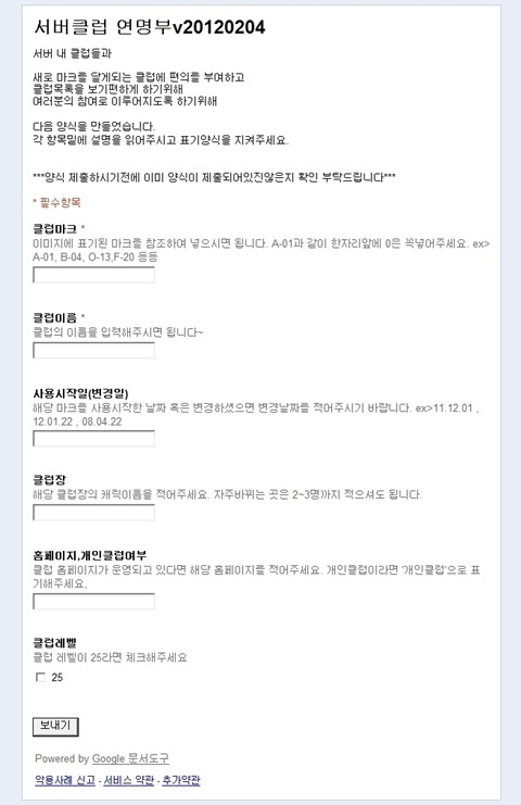 (단, 1번시트(클럽목록)의 맨아래 부터 양식이 채워지기 때문에 주기적으로 제가 재배열을 해야합니다.)